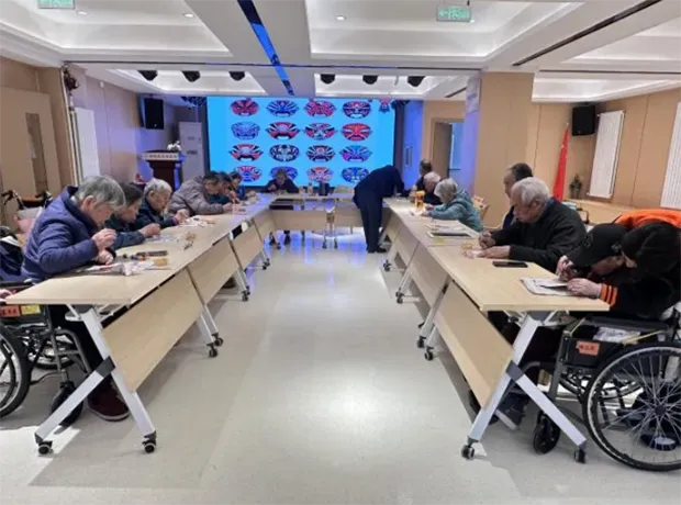 11月17日上午在二楼银龄剧场开展画脸谱活动,当传统脸谱遇上银发时光,便碰撞出别样的温暖与乐趣。老人们以笔为媒,以彩为翼,在一张张空白面具上勾勒线条、涂抹色彩,重拾儿时欢喜,共赴一场传统文化的温柔之约。一抹油彩,不仅绘出了传统艺术的魅力,更绘出了老人们的快乐与满足。此次脸谱绘制活动,不仅让老人们感受到了传统文化的独特韵味,更在动手创作中增进了彼此的交流,缓解了孤独感。
